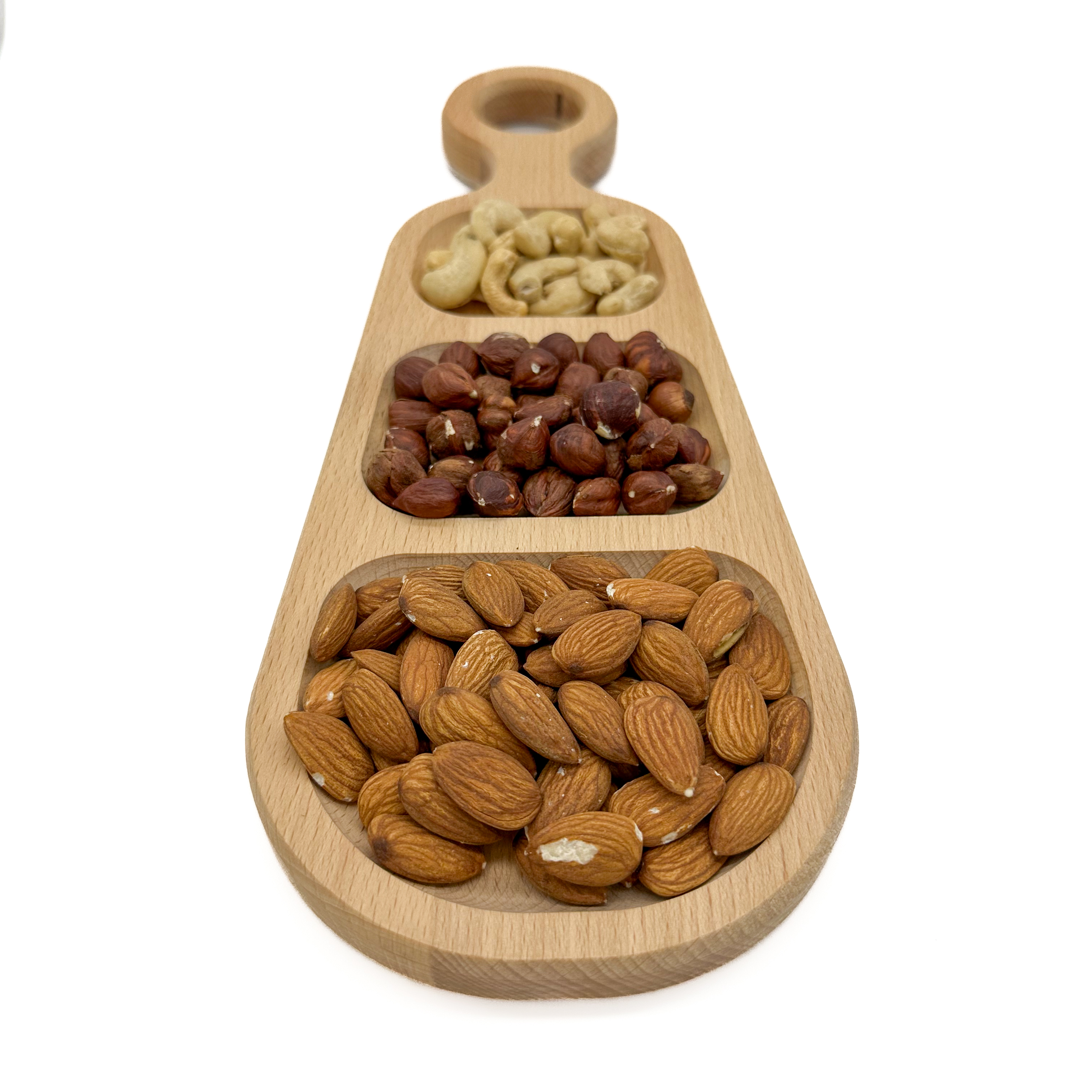 Забезпечте своїм застіллям запаморочливу атмосферу з нашою чарівною "Дерев'яною менажницею на 3 поділа"! Цей вишуканий аксесуар стане вашим незамінним помічником у створенні легкого та елегантного сервірування столу, надаючи особливого шарму романтичним вечерям, затишним посиденькам з друзями або захоплюючим спортивним заходам з улюбленими напоями та закусками.