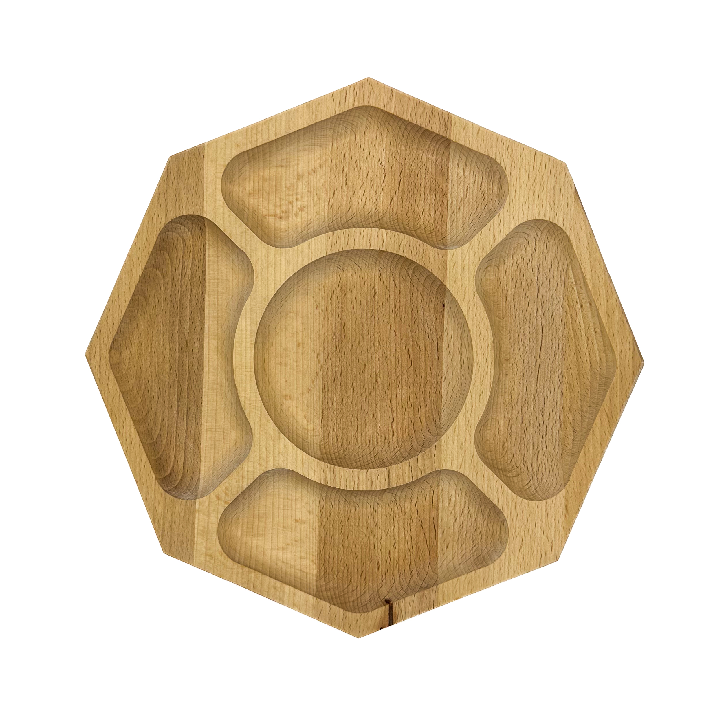 Догляд за дерев'яною менажницею - це легка та приємна задача. Вона не потребує особливих зусиль, оскільки з легкістю миється мильним розчином. Наша менажниця має чудовий дизайн із 4 відділеннями, що забезпечують зручне розташування страв та закусок. Її практичність полягає в тому, що вона замінить необхідність використовувати багато тарілок, а також може бути чудовою дерев'яною тацею.