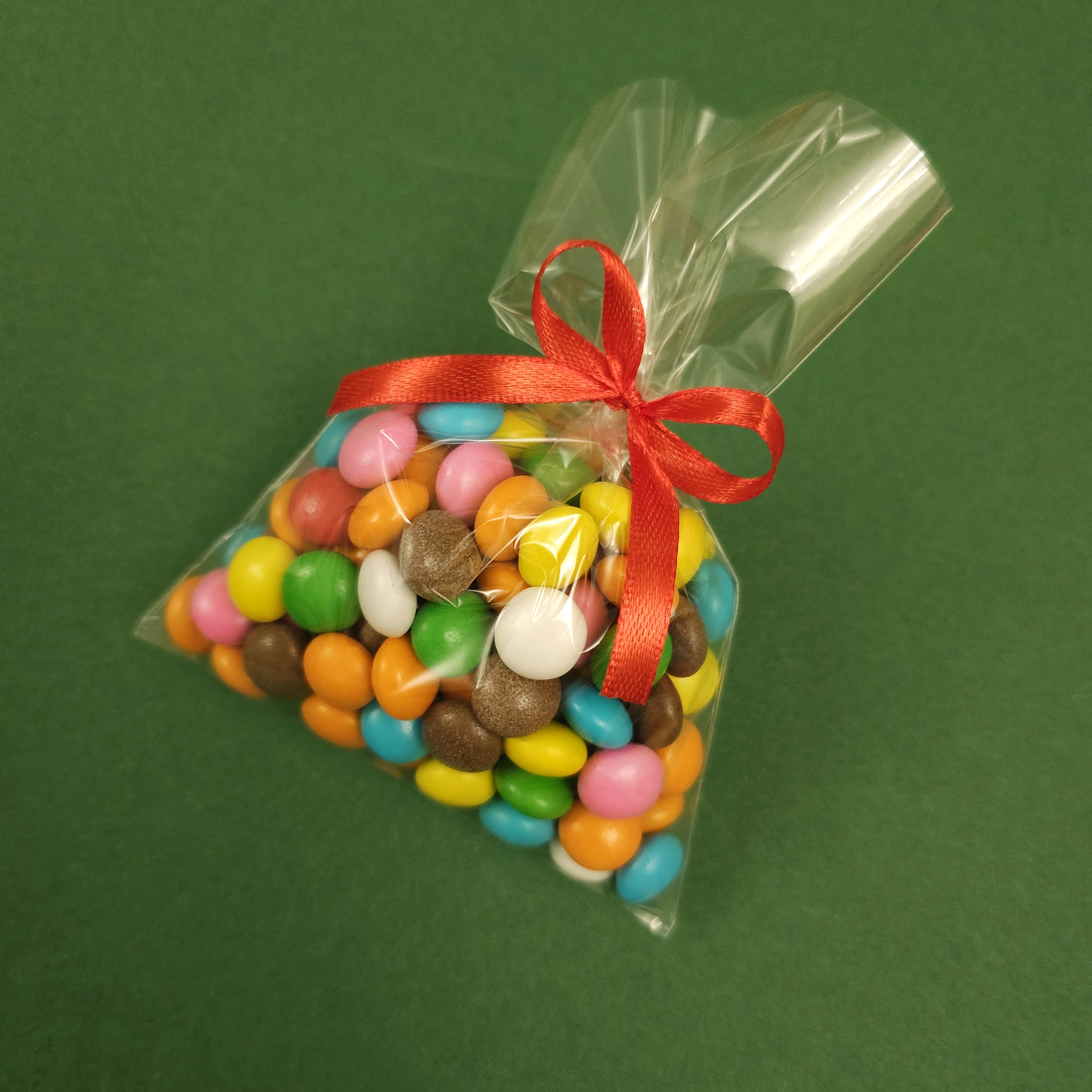 - смачнюче печиво - різнокольорове шоколадне драже - маленька шоколадка - цукерка з привітанням - свічка для святкової атмосфери - дерев'яна іграшка