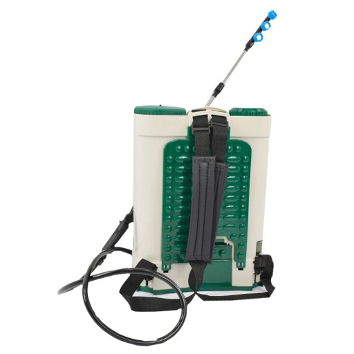У комплекті з обприскувачем йде акумулятор, зарядний пристрій, 5 видів форсунок, гнучкий шланг, штанга та наплічний ремінь. Завдяки акумулятору обприскувач може працювати протягом 3-4 годин від однієї зарядки.