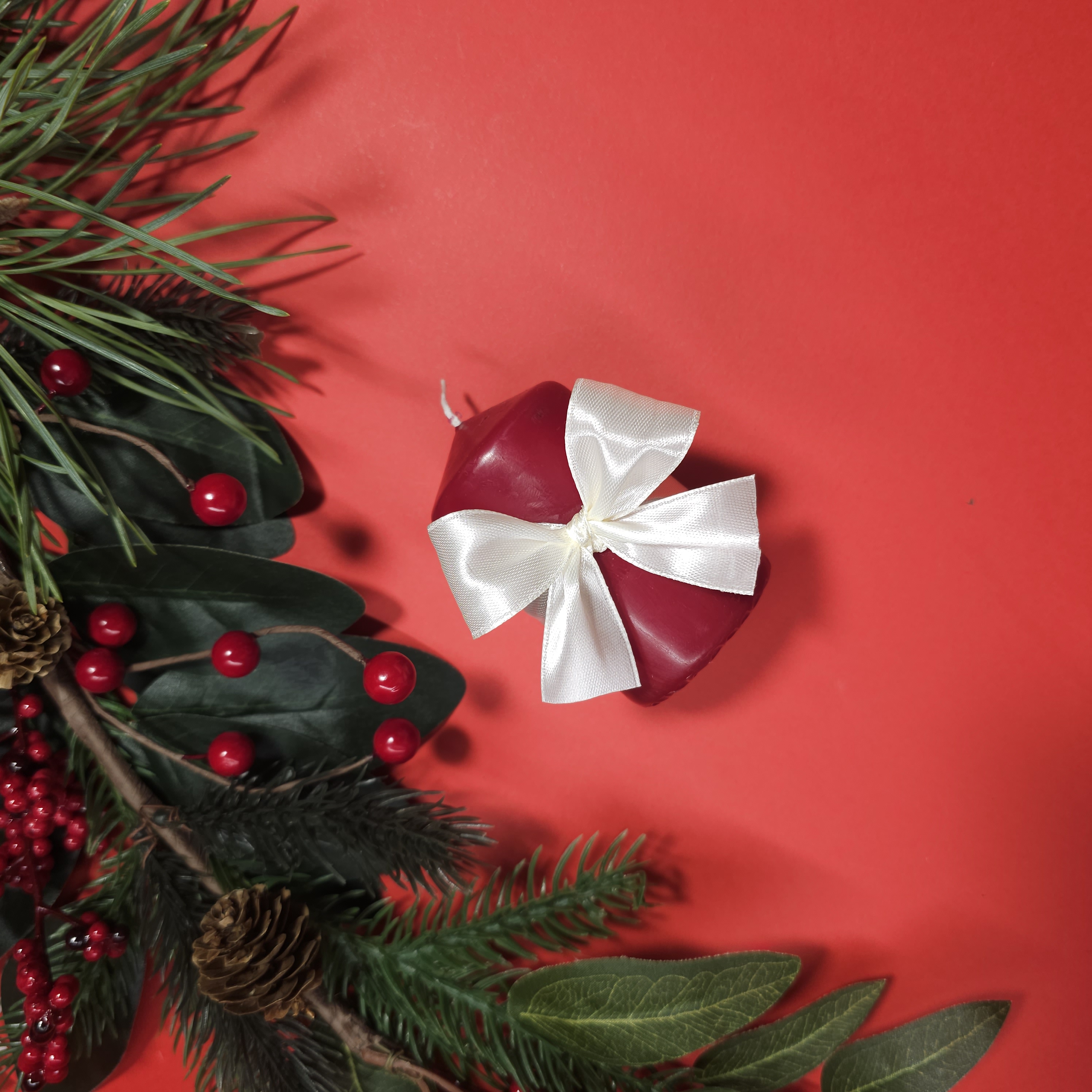 Святкові аксесуари: - Свічка — додає м’якого світла й створює відчуття домашнього спокою - Дерев’яна ялинкова прикраса — стильна деталь для святкового інтер’єру