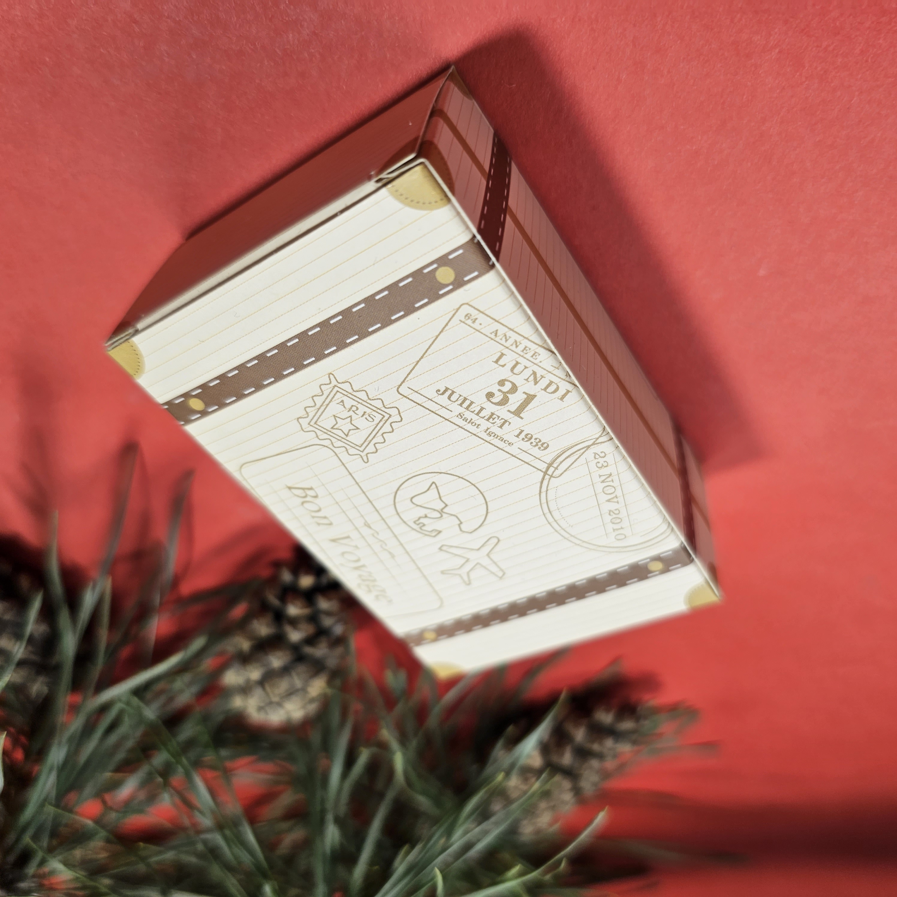 Солодка частина: - Різнокольорове драже у святковій упаковці у формі ялинки з написом “Merry Christmas” — основна солодка частина набору. - Цукерки у коробочка в формі валізи. - Чай з фруктово-квітковими нотками та натуральними добавками.