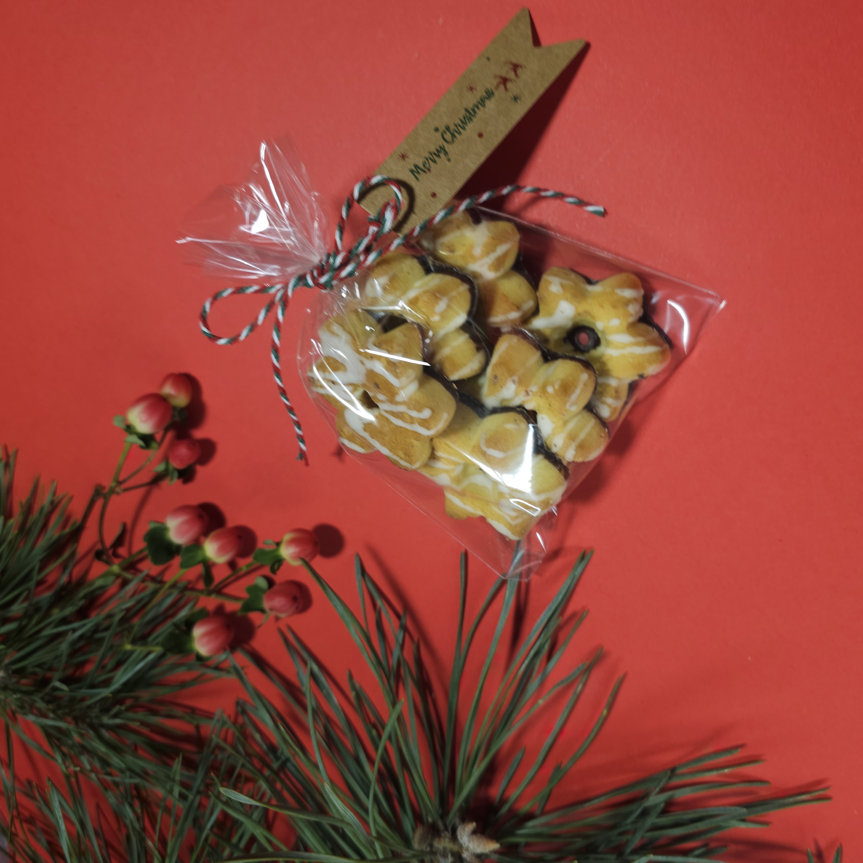 Солодощі: - Хрустке печиво — ідеальне доповнення до чашки чаю - Шоколадна цукерка “Only Choco Tales” із зображенням Санти — святковий символ солодкого настрою - Чай із фруктово-квітковими нотками та натуральними добавками — зігріваючий аромат з легкими відтінками свята
