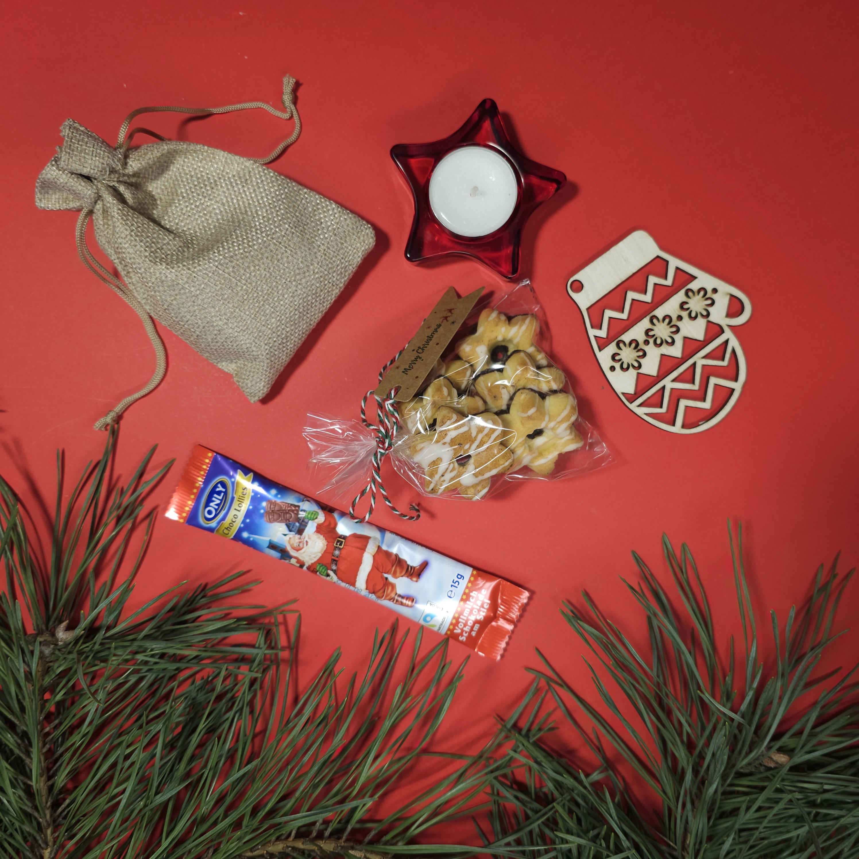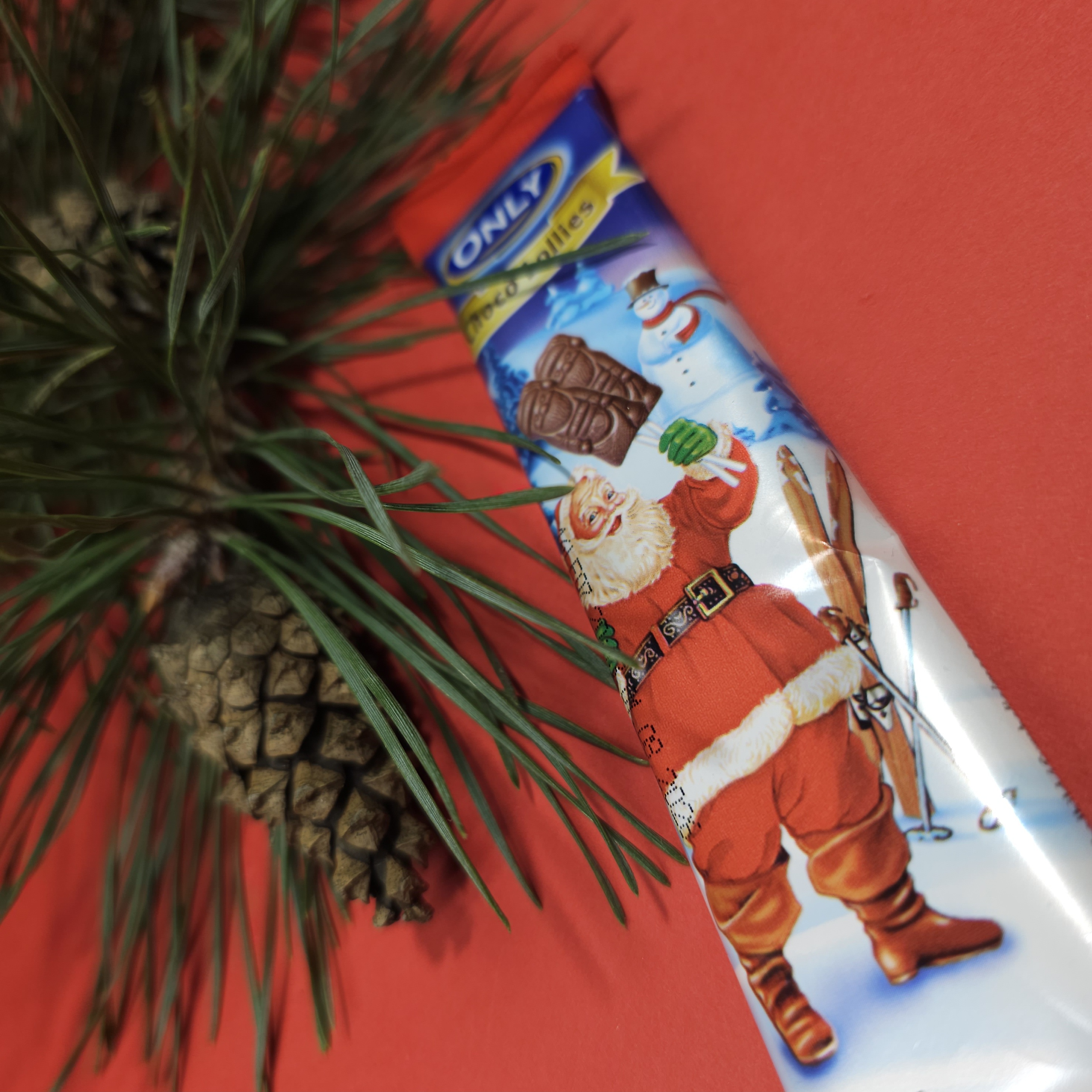 Солодощі: - Хрустке пісочне печиво — ніжне та ароматне, ідеально смакує до гарячого чаю - Шоколадна цукерка “Only Choco Tales” із зображенням Санти — солодкий символ новорічного настрою - Запашна кава, що щігріє і наповнить оселю приємним ароматом.