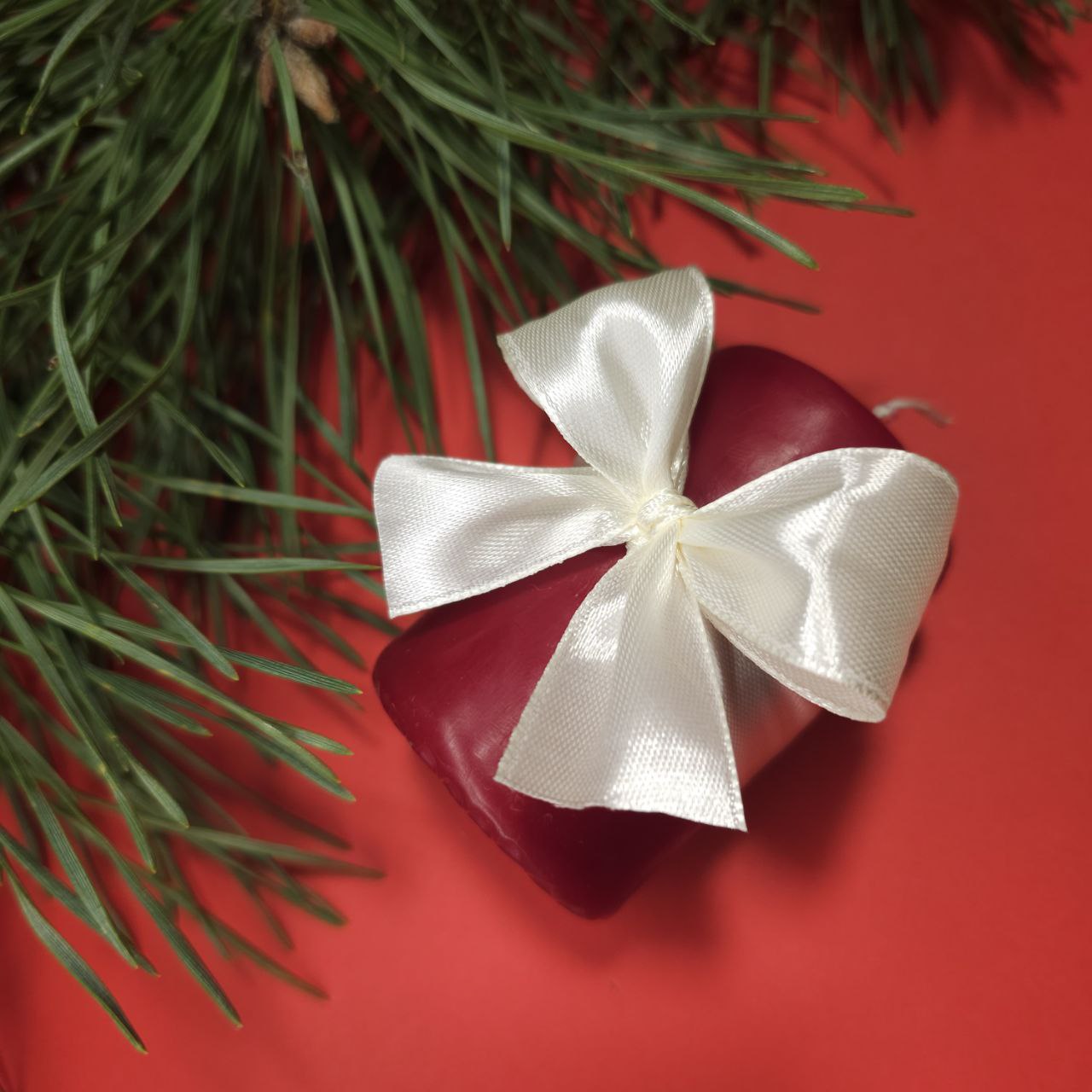 Святкові аксесуари: - Свічка — створює затишне світло й атмосферу свята - Дерев’яна ялинкова прикраса — стильний декоративний елемент для зимового інтер’єру