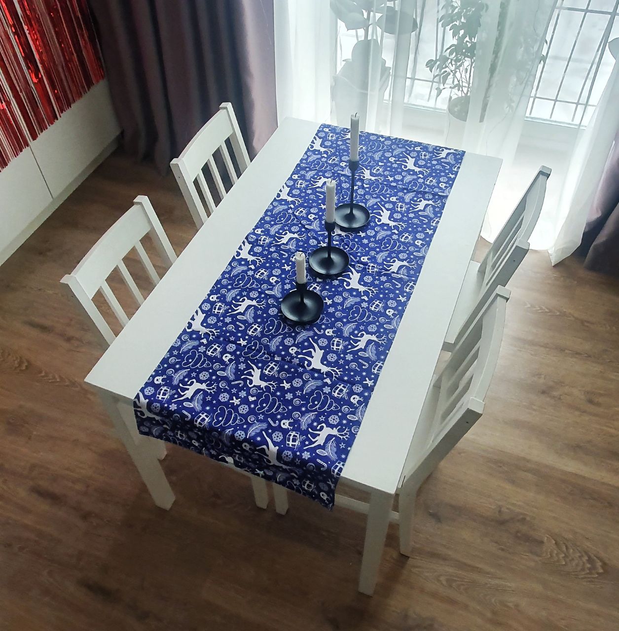 Новорічна доріжка на стіл (або раннер, або наперон) бавовняна у вітальню, кухню або їдальню.