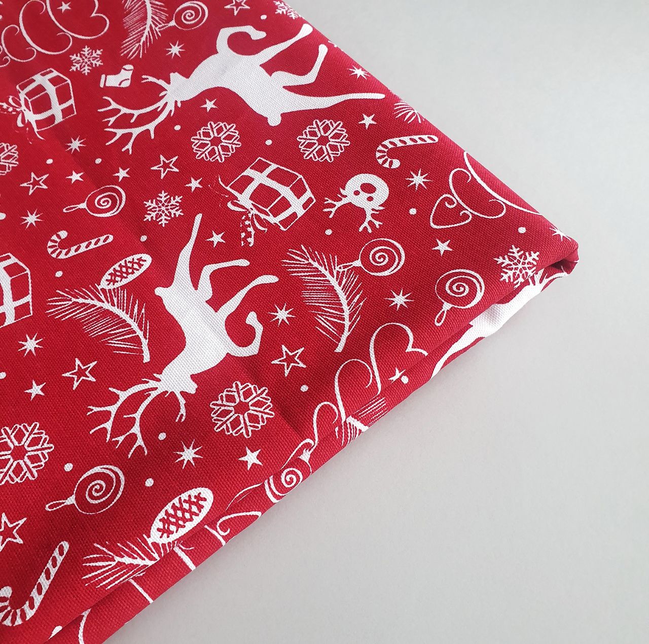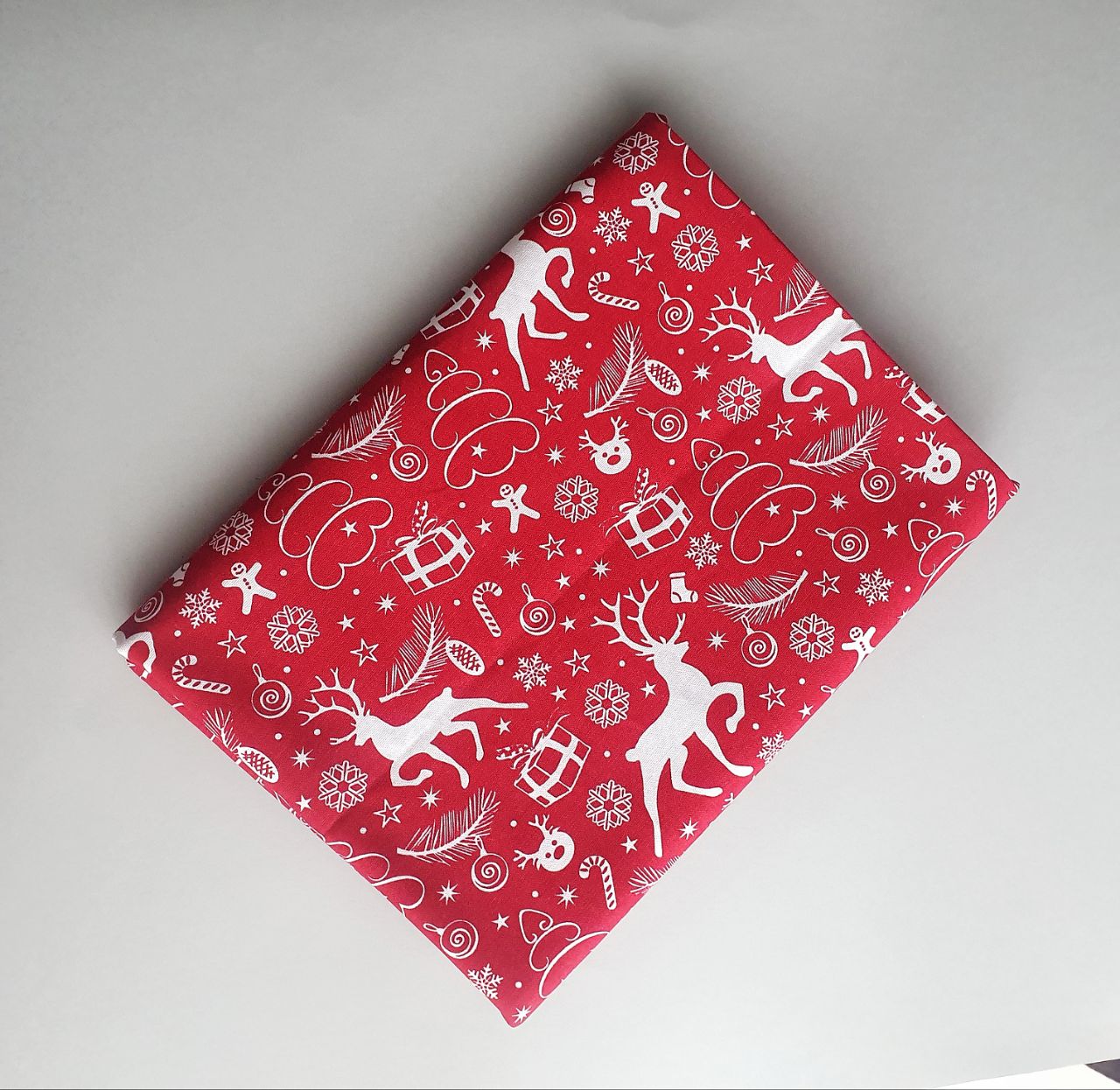 Розмір: 165*140 см Щільність: 230 г/м Тип тканини: Бавовна Тип малюнка: Новорічні Тон: Червоний