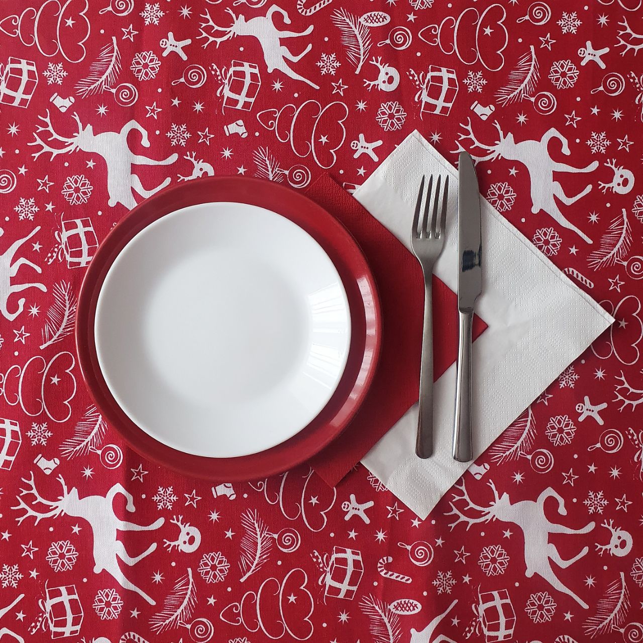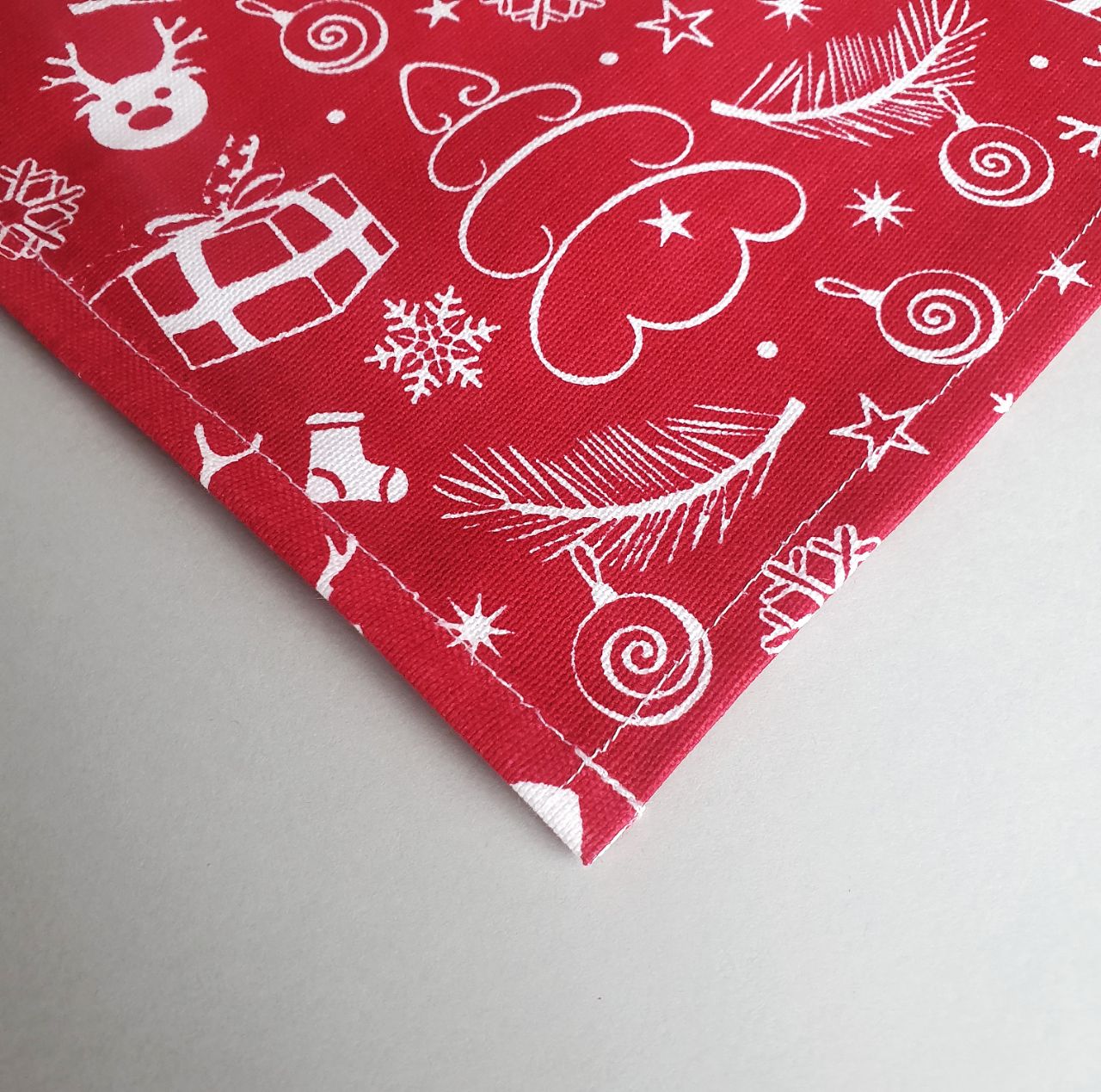 Бавовняна скатертина з новорічним принтом стане чудовою окрасою для Вашого святкового столу. Яскрава та барвиста скатертина відмінно вписується в інтер'єр кухні або їдальні.