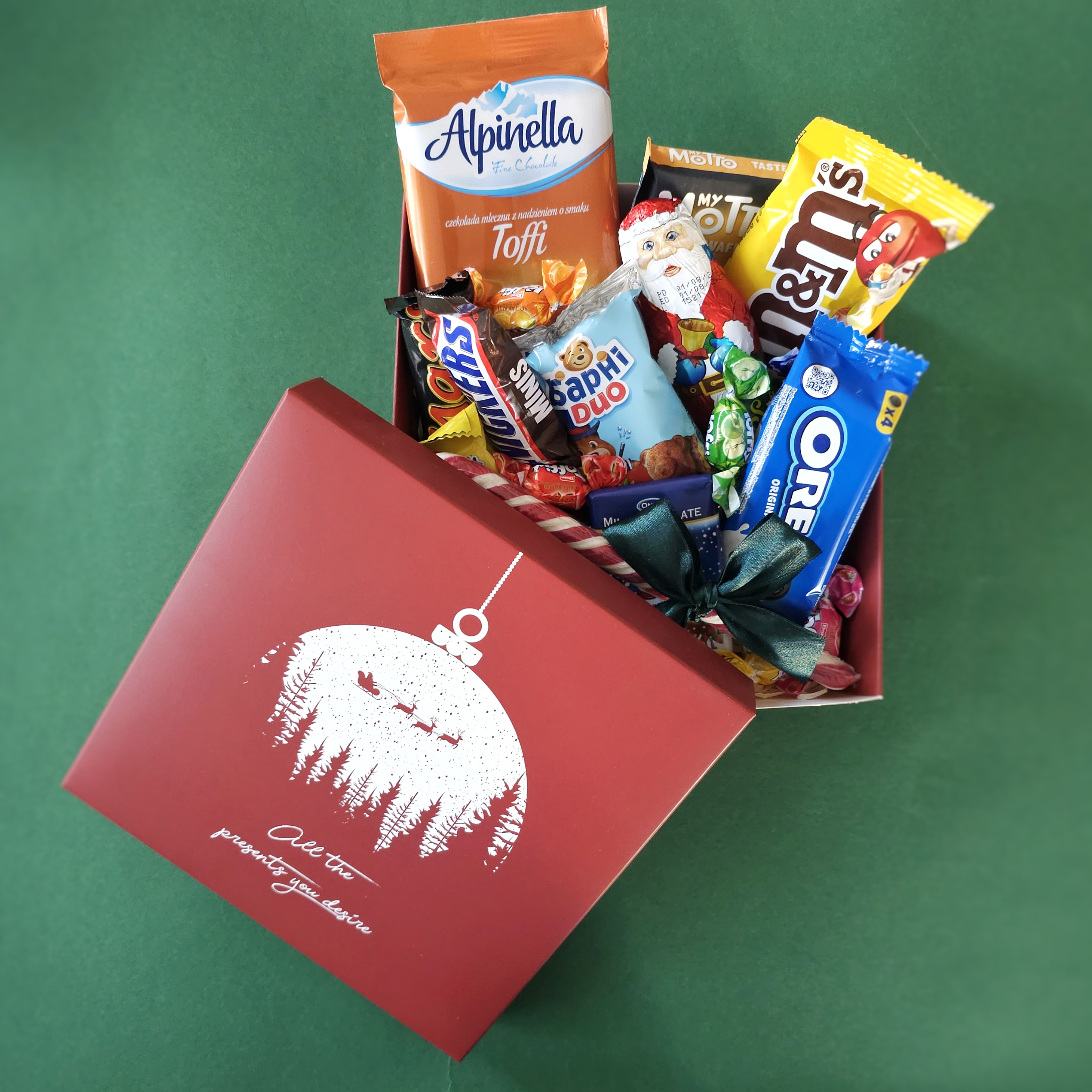 Подарунковий набір солодощів — це чудовий вибір для різдвяних та новорічних свят! Вишукано упакований в стильну подарункову коробку, він стане приємним сюрпризом для кожного, хто любить солодке. Такий набір підійде не тільки для дітей, але й для дорослих, адже в ньому зібрано все, щоб задовольнити найрізноманітніші смаки. Придбати набір можна прямо зараз, щоб порадувати близьких до свят!