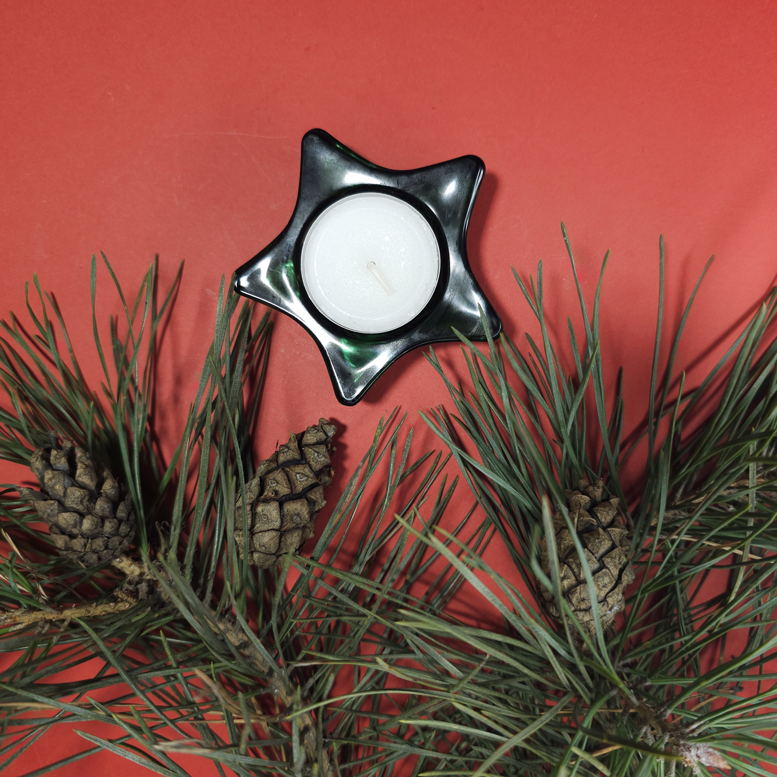 Святкові аксесуари: - Підсвічник у формі зірки з білою свічкою-таблеткою — створює м’яке приємне освітлення й теплу затишну атмосферу