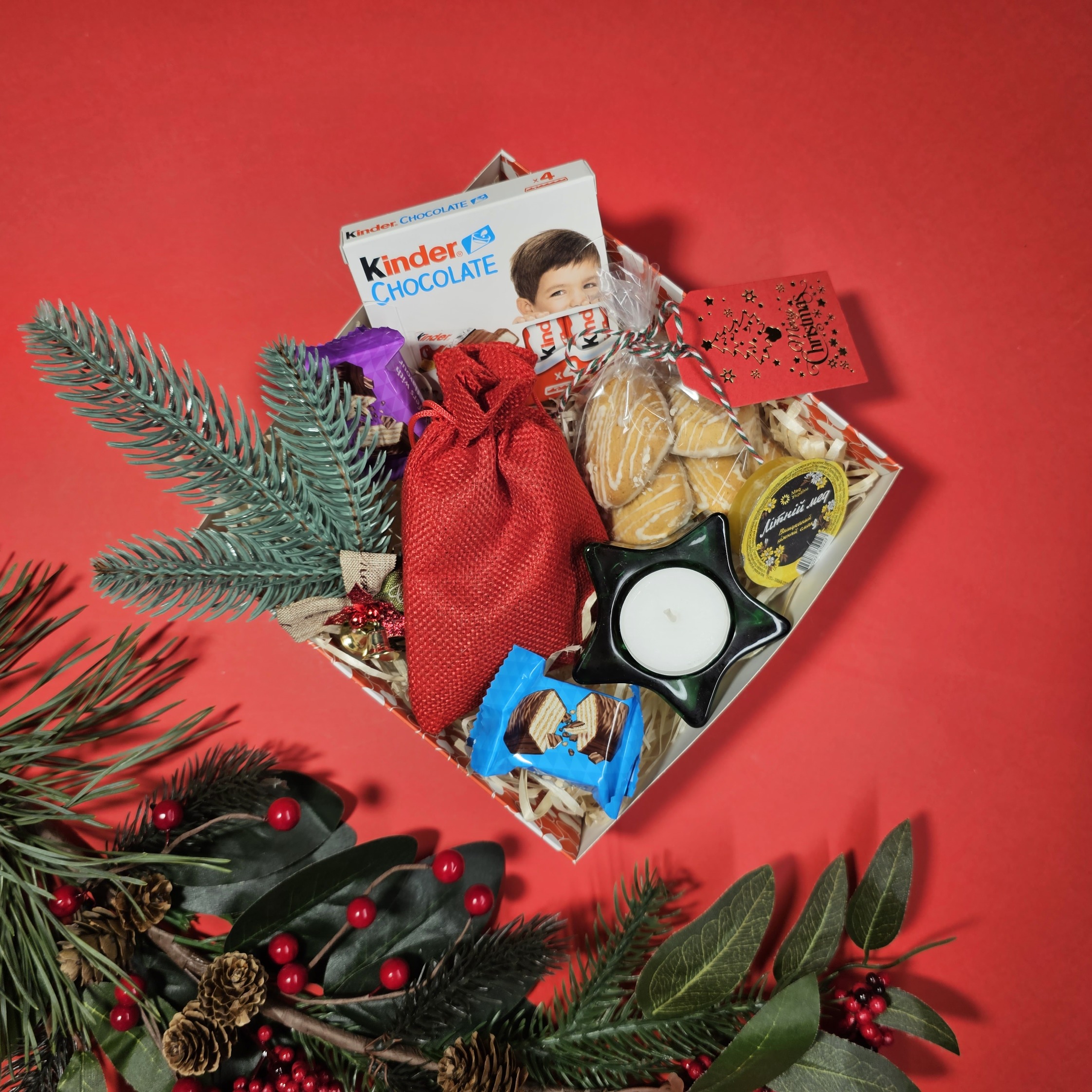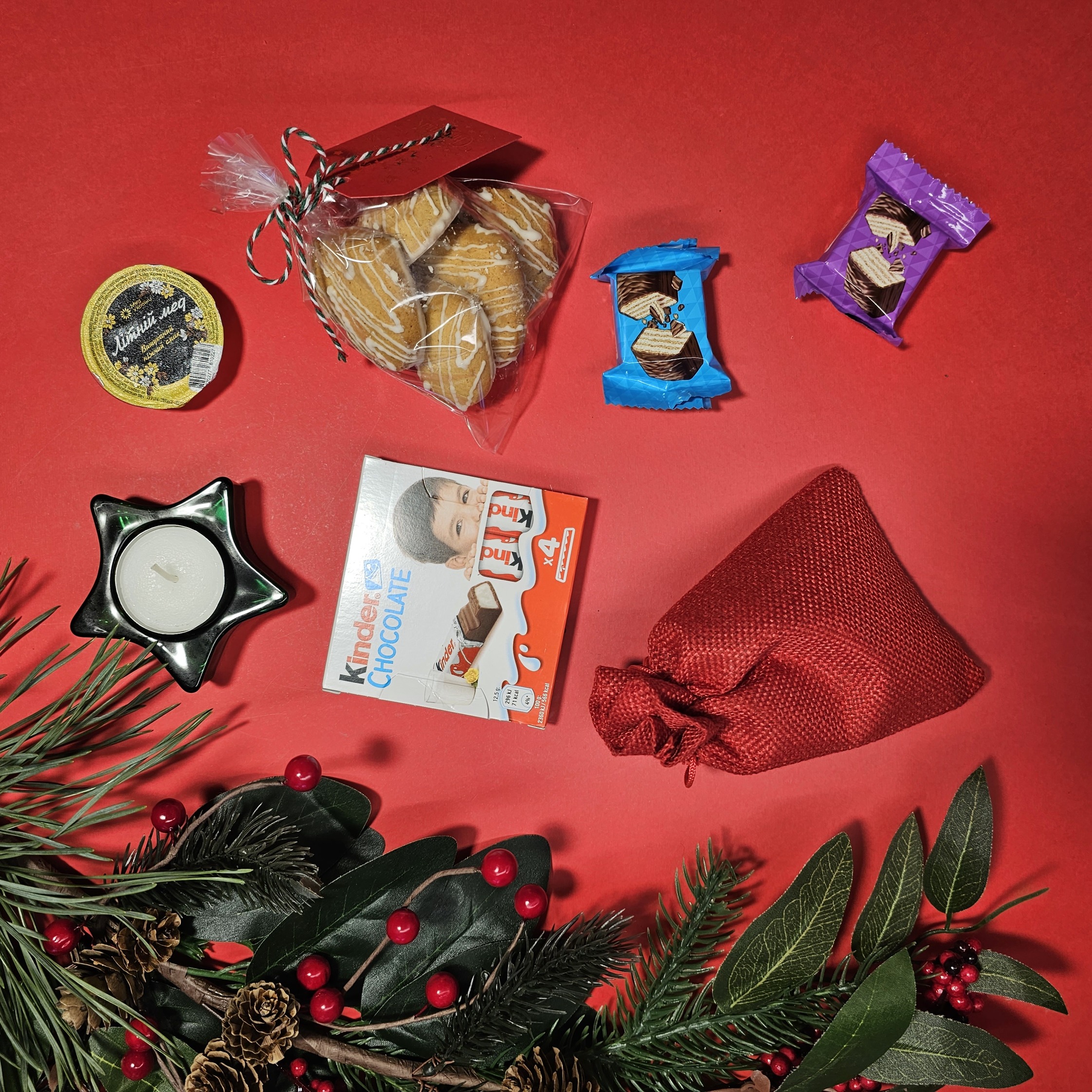 Переваги набору - Прекрасний готовий подарунок — солодощі, чай і декор у стильному оформленні - Дбайливо підібрані інгридієнти — смаколики, мед і чай - Естетичне пакування — виглядає святково й не потребує додаткового оформлення - Підходить для всіх — чудовий вибір для колег, друзів, дітей або близьких - Ідеальний варіант для Різдва, Нового року, Святого Миколая чи зимових корпоративів