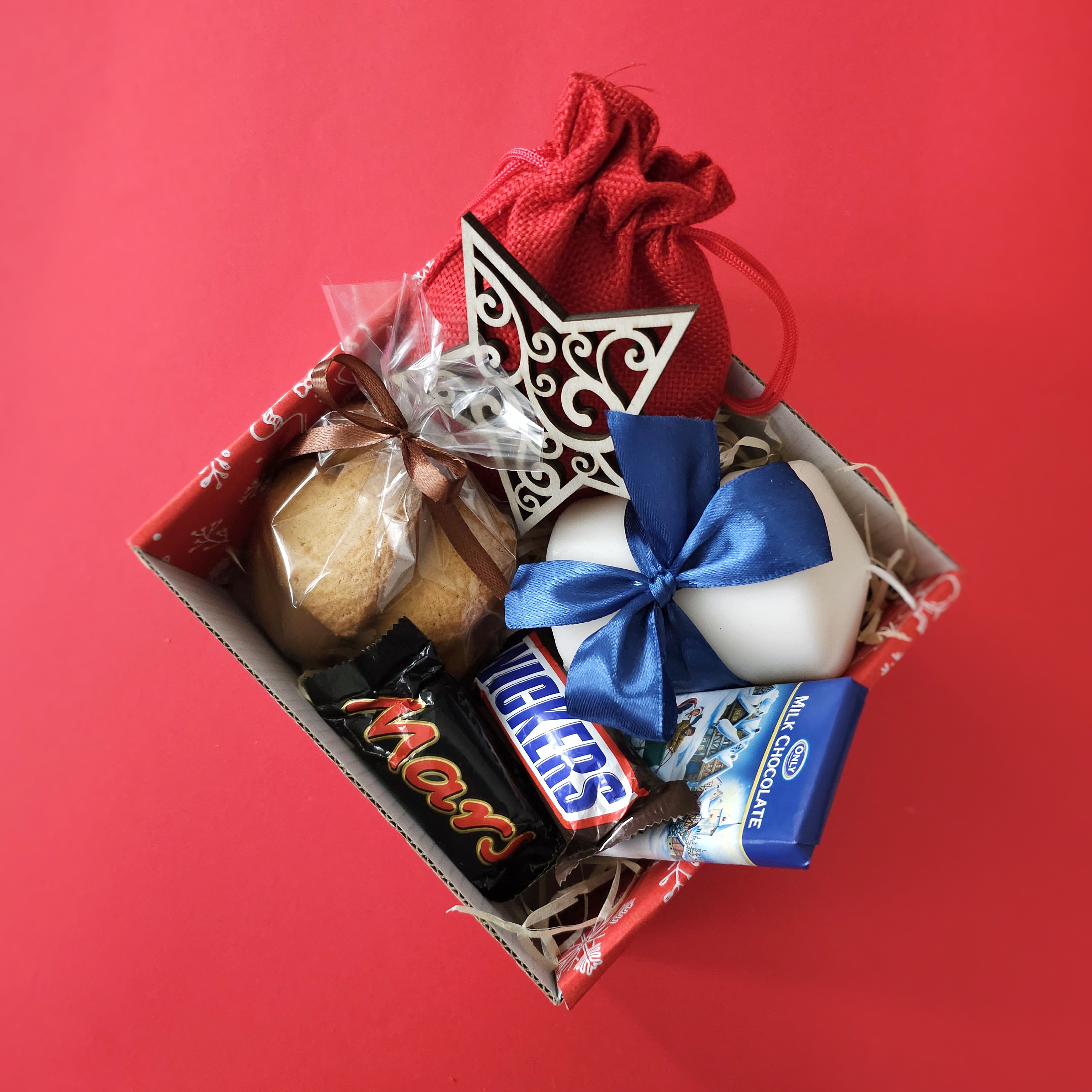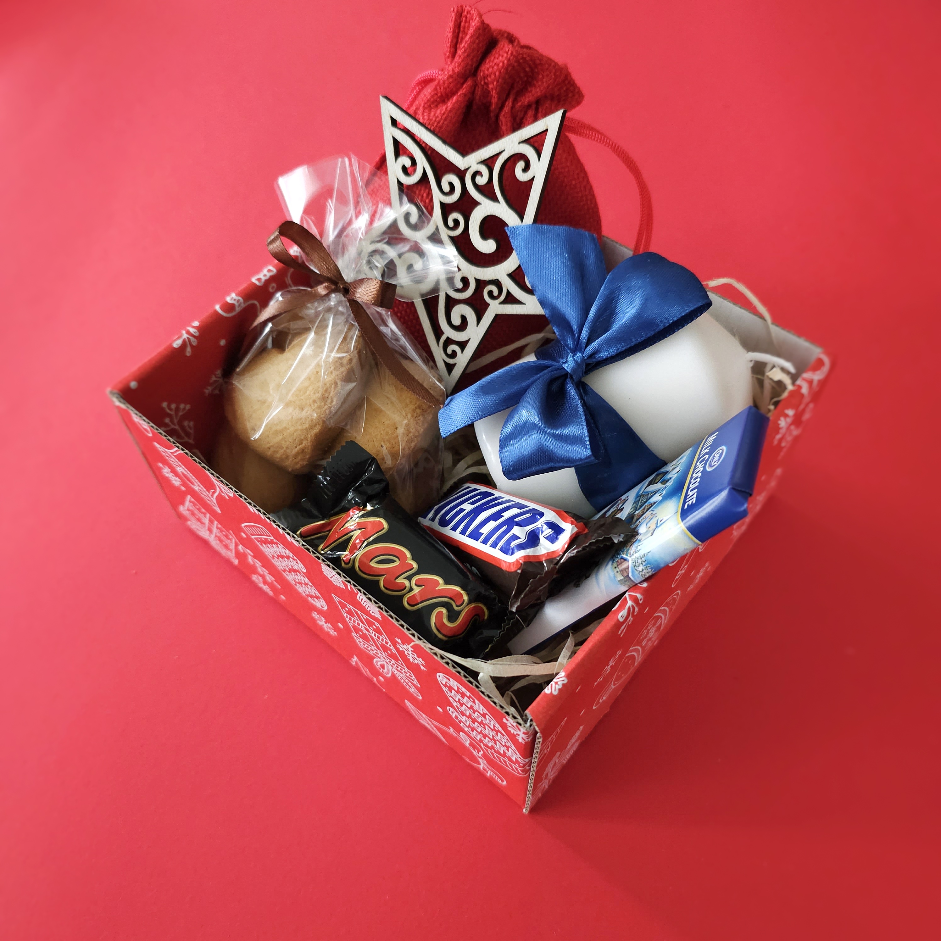 Чай з квітами та шматочками фруктів — ароматний і корисний напій, який створить ідеальний початок або завершення дня. Смачне печиво — ніжний смак, який чудово доповнює чаювання. Mini "Snickers" і "Mars" — улюблені ласощі, що подарують солодку насолоду. Молочний шоколад "Only" — справжнє задоволення для любителів класичних солодощів. Свічка для святкової атмосфери — додасть нотку затишку та тепла. Дерев'яна іграшка — приємний святковий сувенір, який стане прикрасою на ялинці або пам’ятною деталлю. Чому варто обрати "Чайний затишок"?
