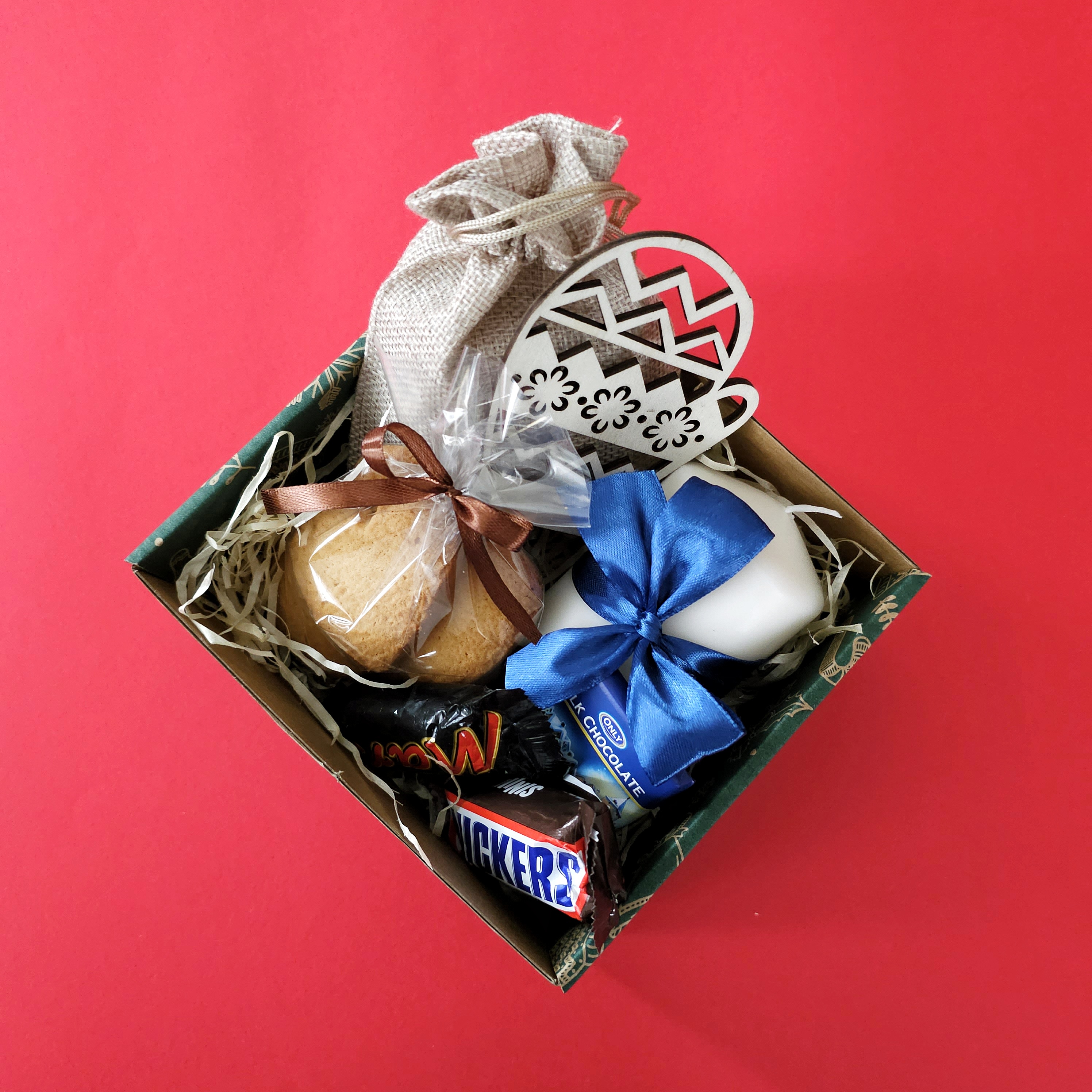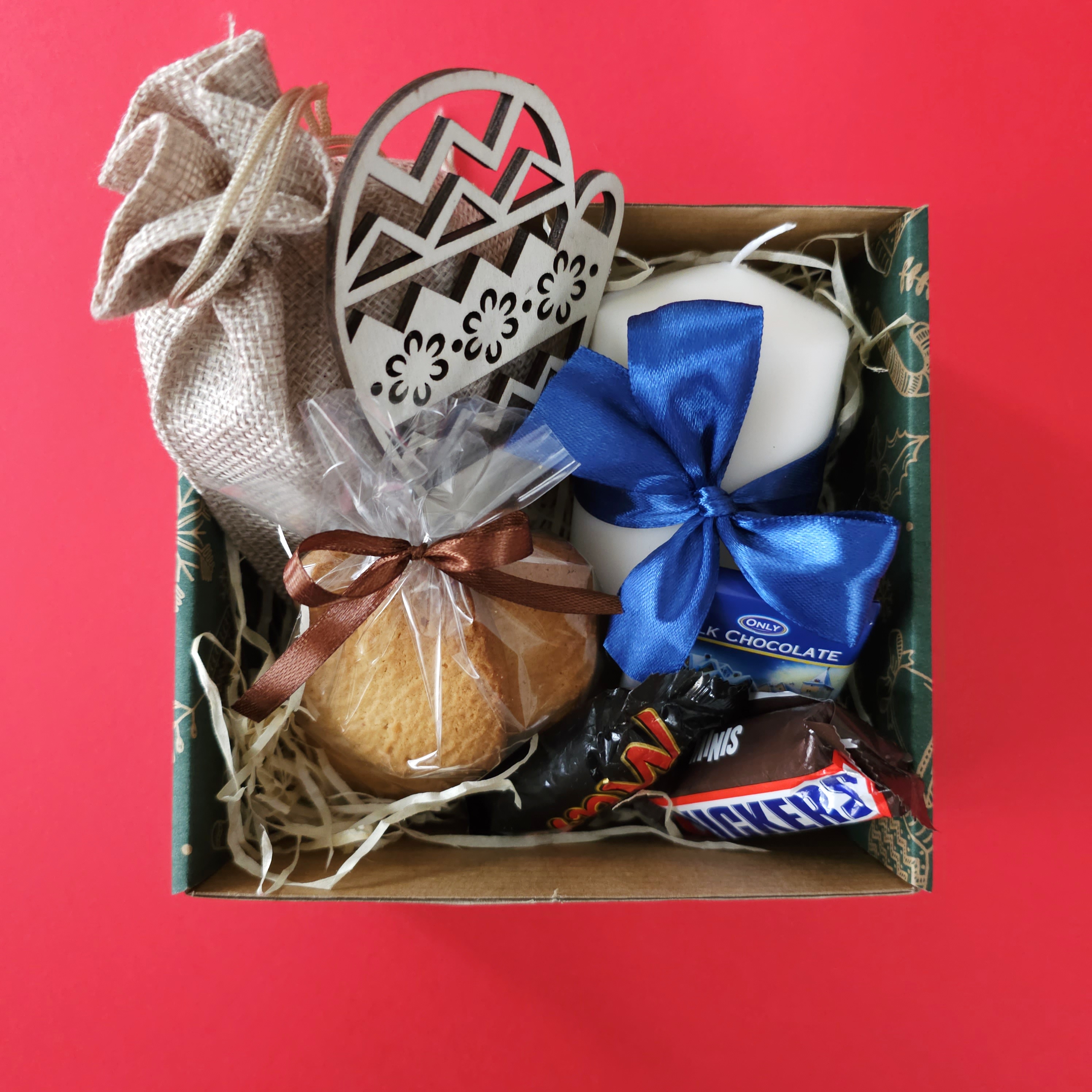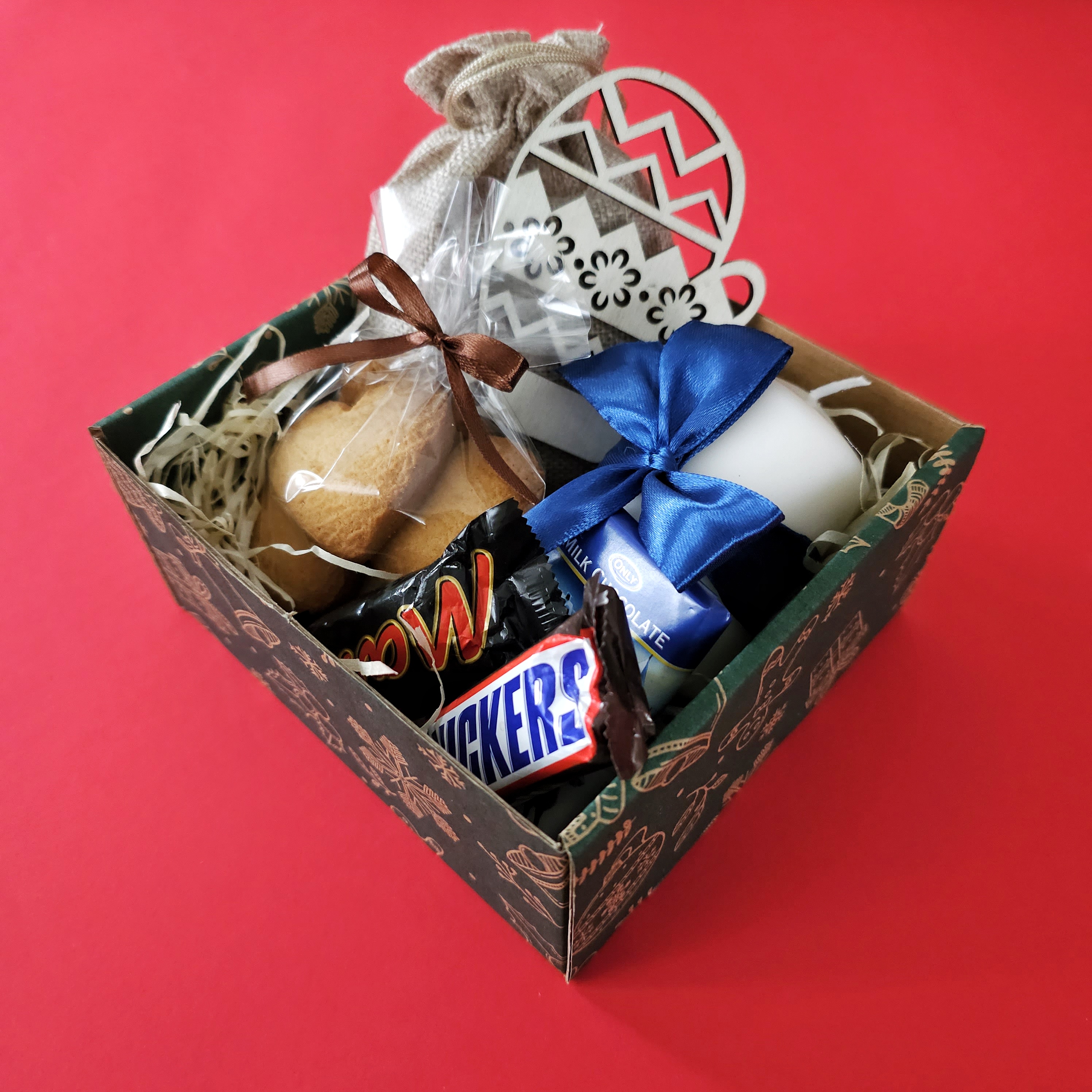 Запашна кава - напій, який дарує справжнє задоволення та затишок. Смачне печиво — ніжний смак, який чудово доповнює чаювання. Mini "Snickers" і "Mars" — улюблені ласощі, що подарують солодку насолоду. Молочний шоколад "Only" — справжнє задоволення для любителів класичних солодощів. Свічка для святкової атмосфери — додасть нотку затишку та тепла. Дерев'яна іграшка — приємний святковий сувенір, який стане прикрасою на ялинці або пам’ятною деталлю.
